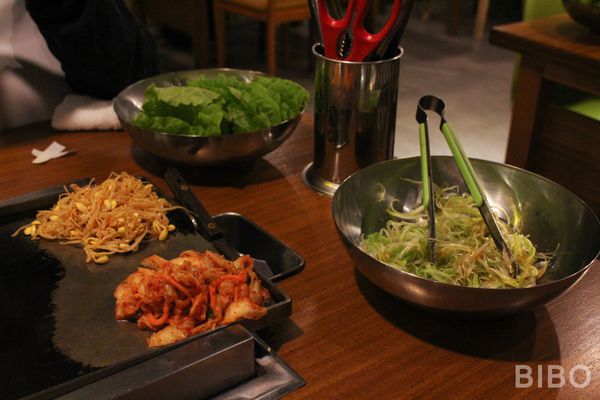 無限量供應有機生菜搭配多種醬醃三層肉,吃再多也不膩