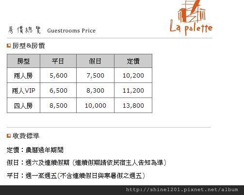 【房型介紹(含其他)】、【下午茶&早餐】 、【房價表&住宿須知】