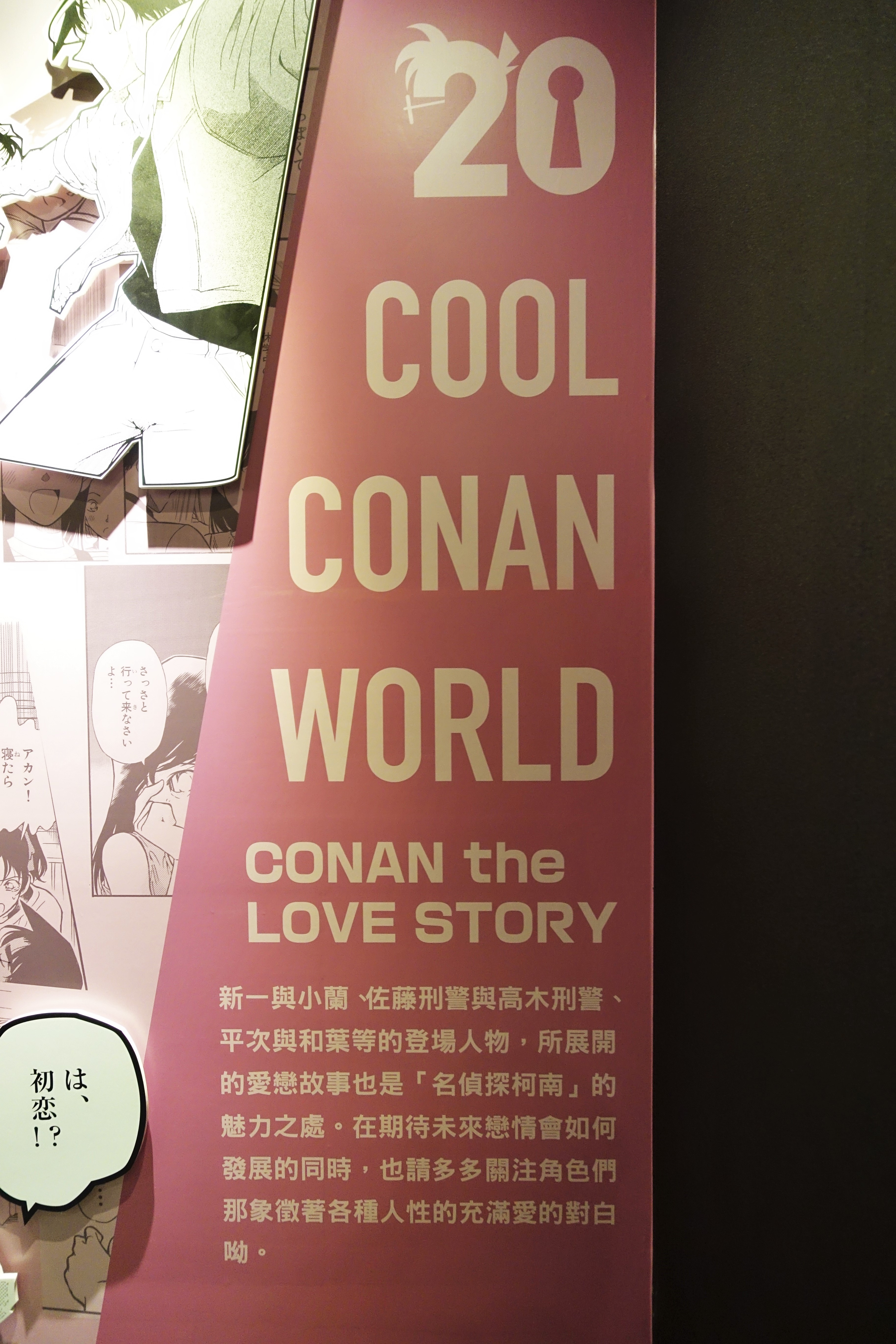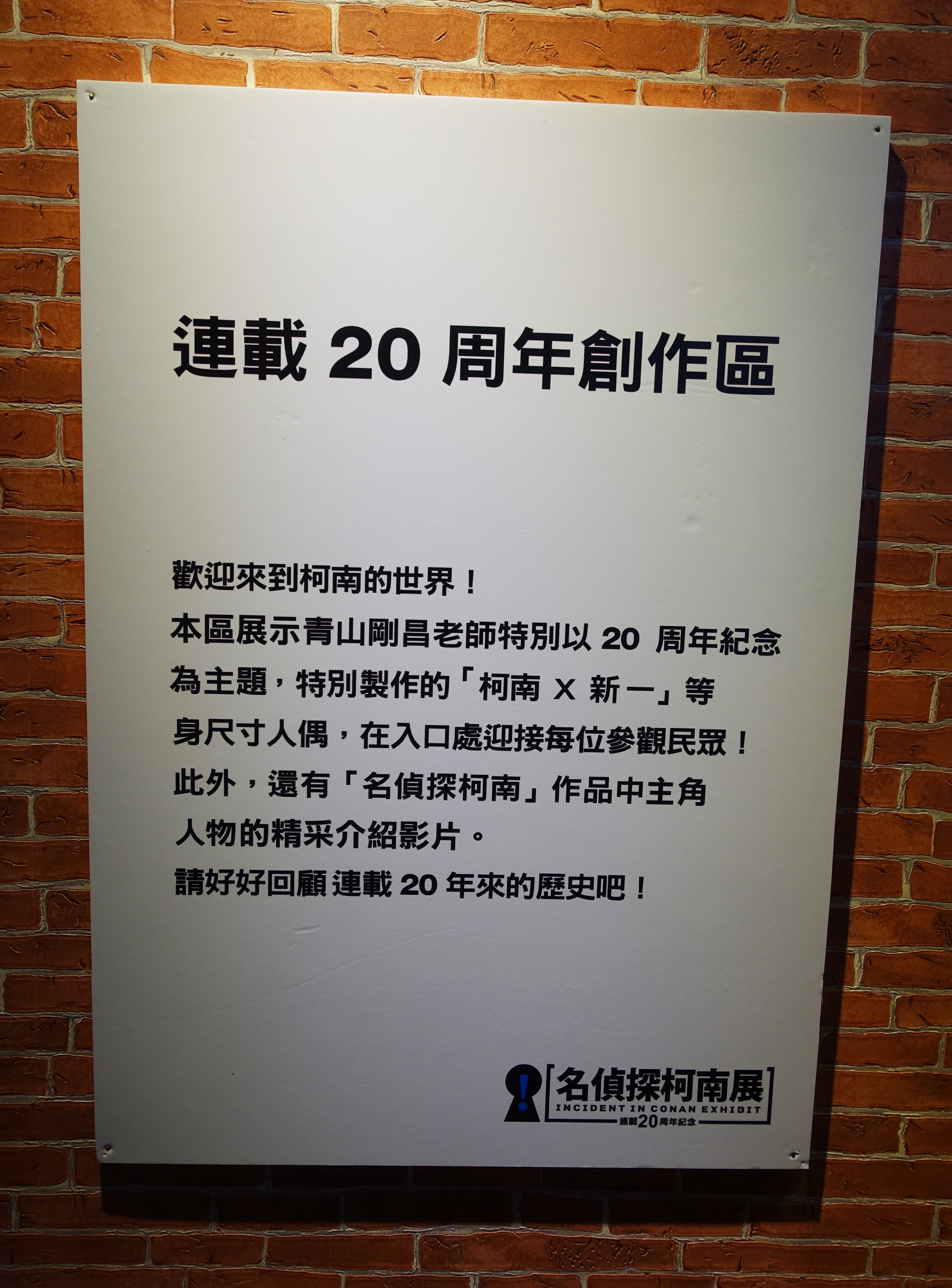 身為被柯南荼毒了整個童年的受害者,一聽到華山園區有紀念連載20周年的名偵探柯南展,當然是鼻子捏一捏,乖乖地付錢入場阿。