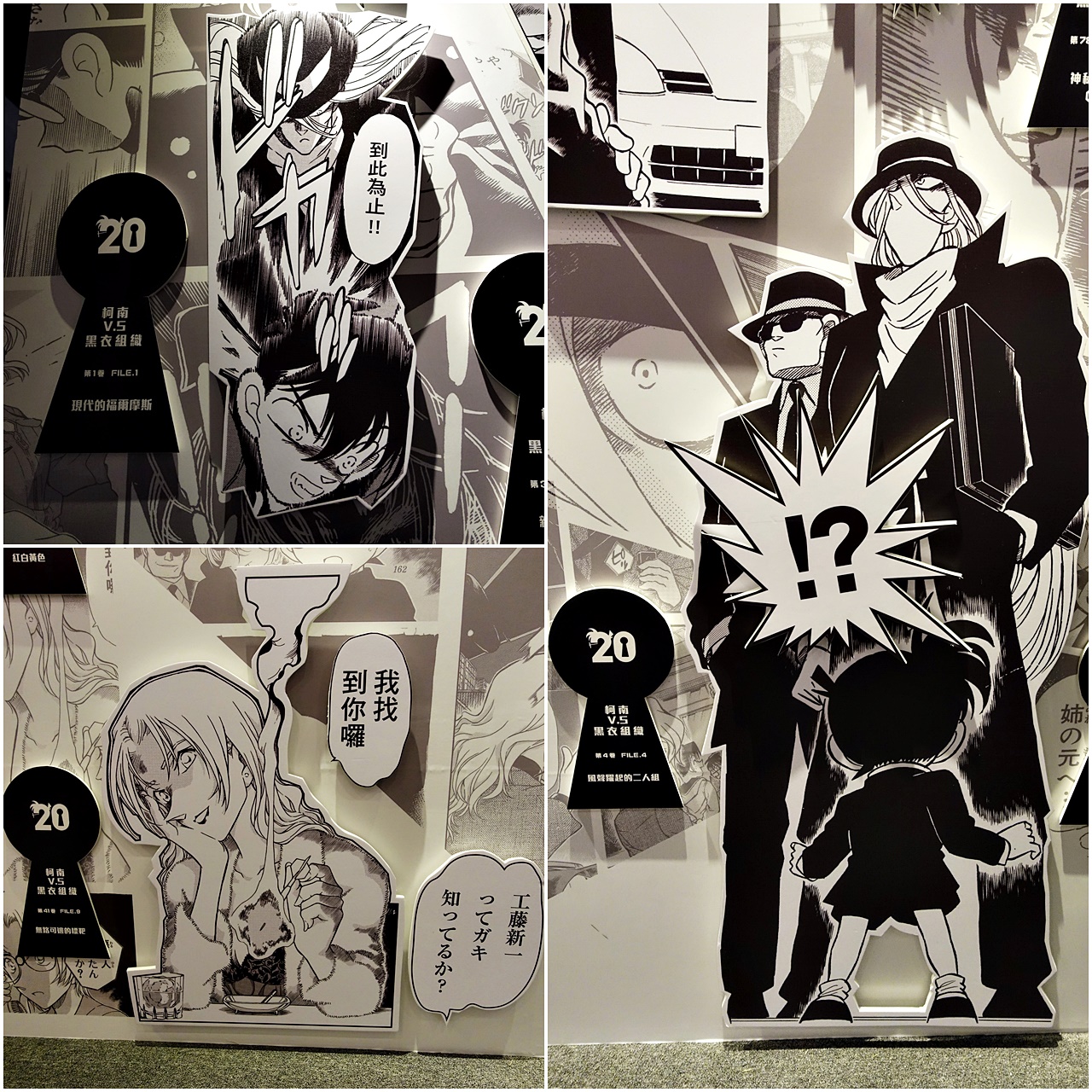 整個展場分成『連載20周年紀念區』、『案發現場-毛利偵探事務所』、『FILE.X犯罪手法解密』、『青山剛昌手稿區』、『經典場景重現』與『紀念商品區』等六區。