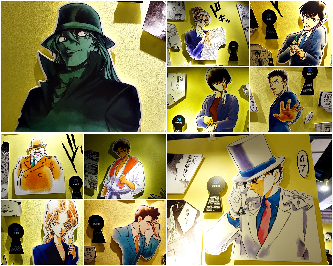 真的建議拿到手冊不要馬上開始解,在『案發現場-毛利偵探事務所』除了線索外,也布置得比較有氣氛,更適合解謎,而且電視牆區往下走還有精彩的『人物介紹』展品。