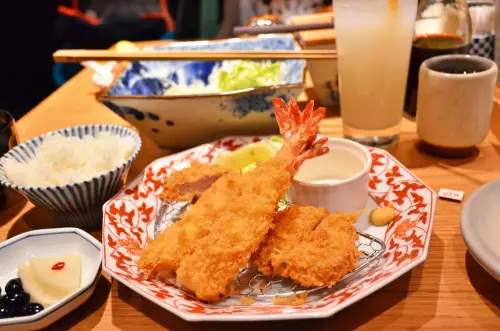 含腰內肉豬排、蝦排、蔬菜捲、茶碗蒸、甜點、飲料