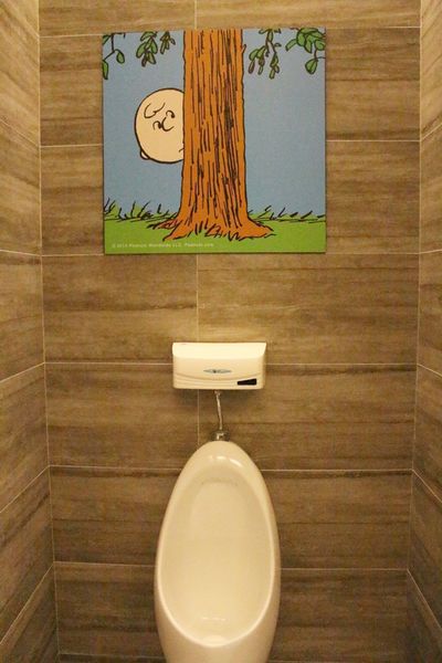 ▲當我看見小便斗立馬會心一笑,正在解放的男士請小心調皮的查理布朗躲在樹後方偷偷"賞鳥"XD