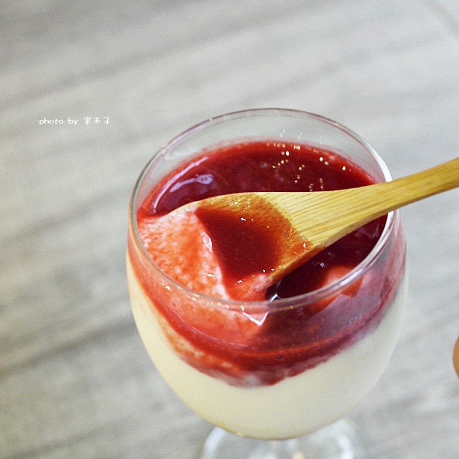 莓果醬+優格一起吃味道酸酸甜甜的,