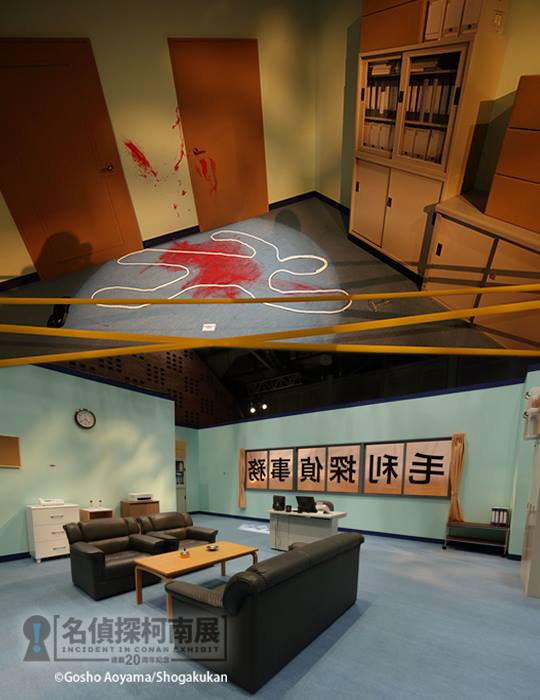 ▲電影中的毛利偵探事務所在這原汁原味的呈現,一旁還有血淋淋的命案現場