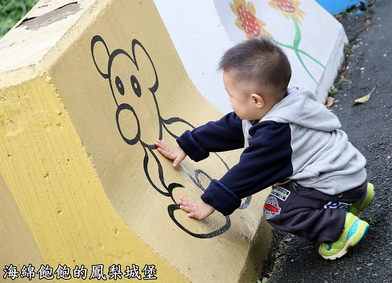 小蠻頭最愛的彩繪石墩,上面畫有阿貓阿狗
