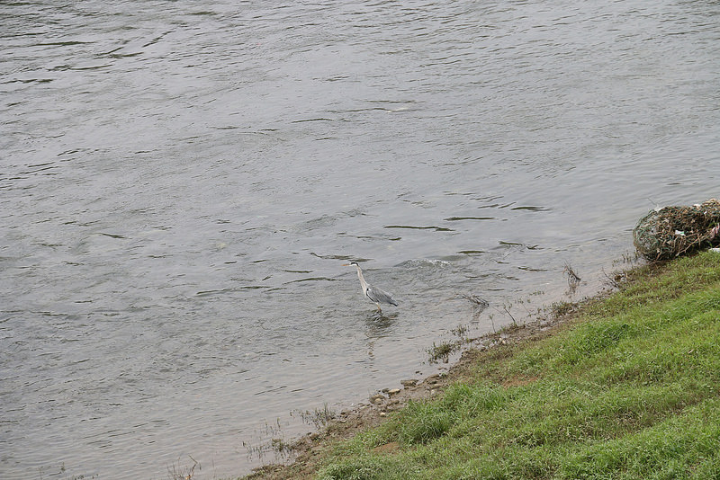 水裡有吳郭魚,河岸邊有白鷺鷥