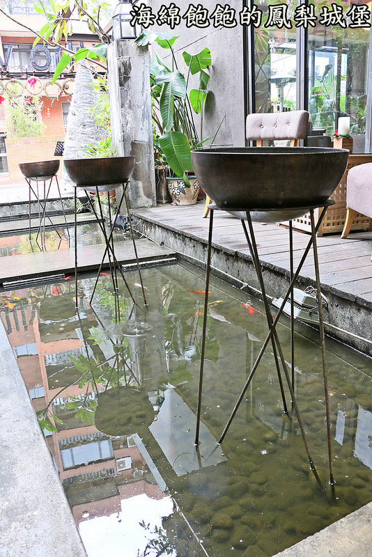 中間還有水池,裡頭的魚兒優遊自在