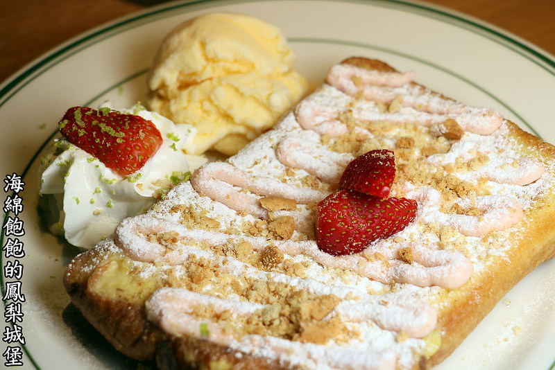 法式吐司好Q,上面的草莓乳酪醬甜而不膩