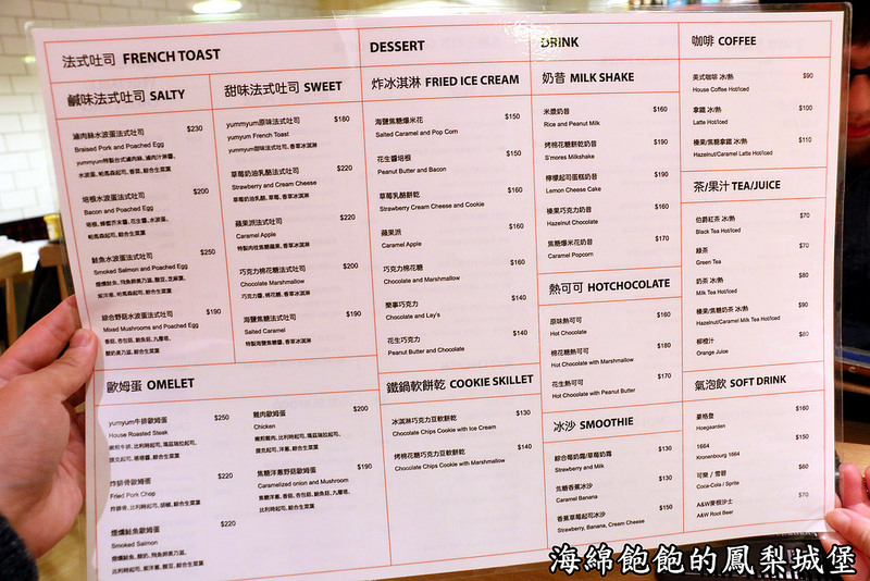 法式吐司、鐵鍋軟餅乾、炸冰淇淋、奶昔、熱可可、咖啡等