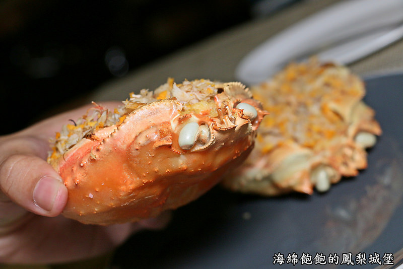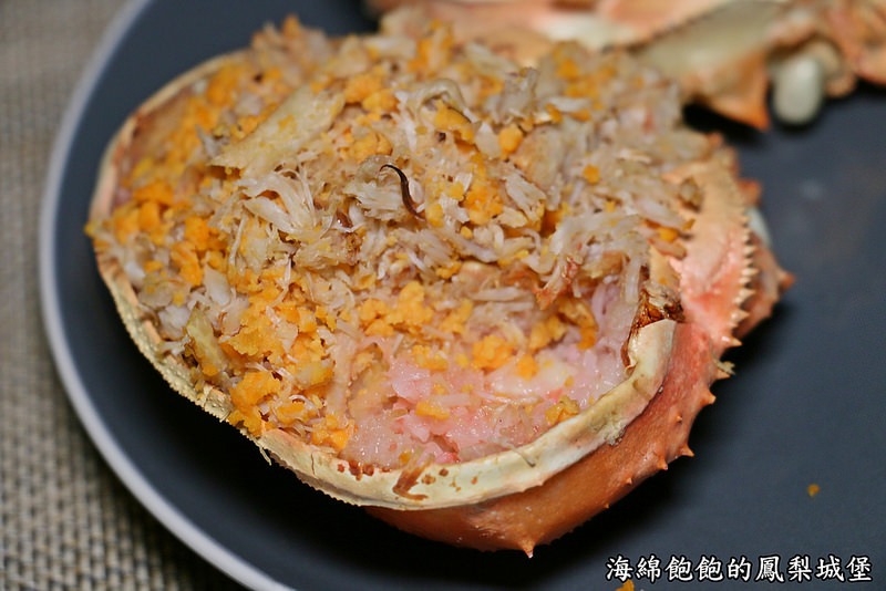 將蟹膏及蟹肉放入搭配白醬窯烤