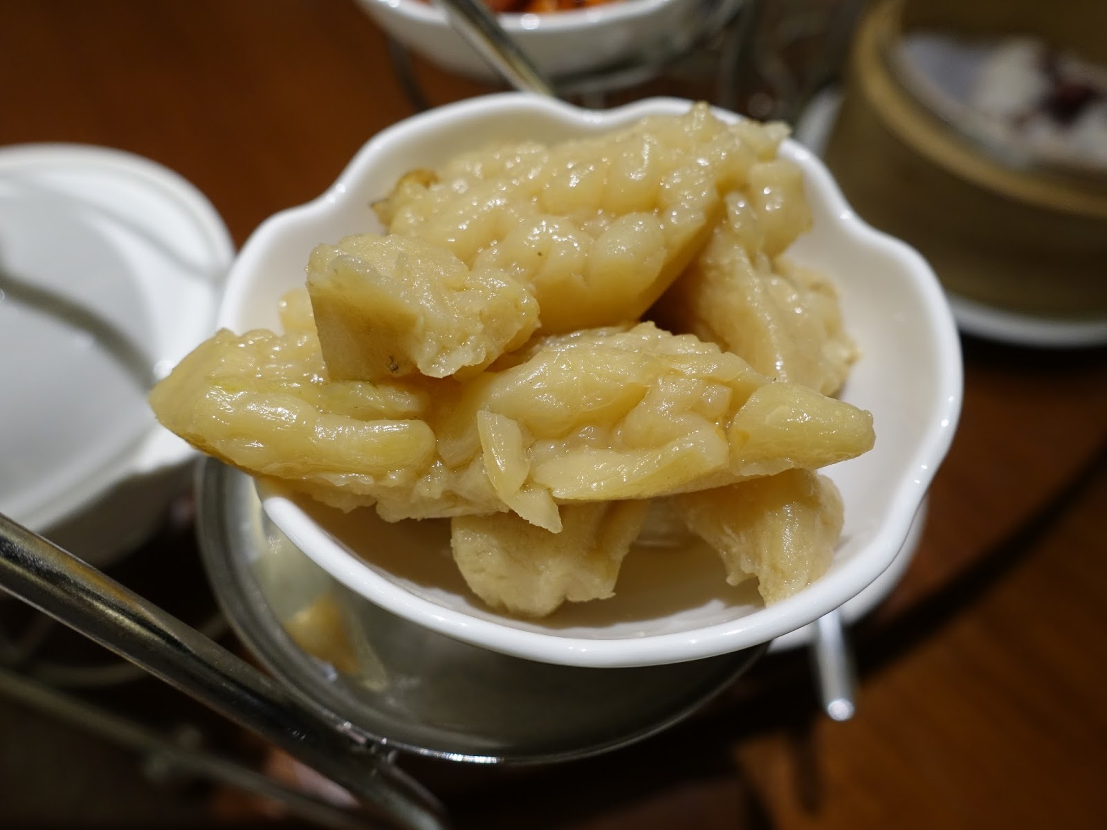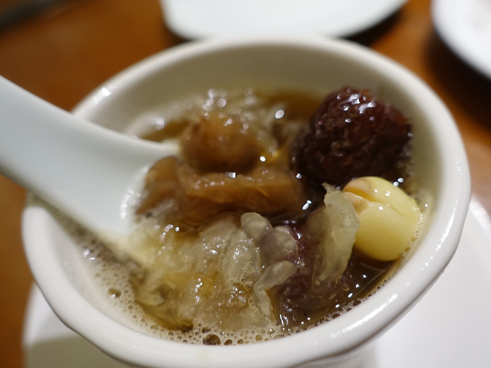 就連天香樓的銀耳蓮子湯也讓我驚艷不已,銀耳質地燉得恰到好處,口感滑順,濃郁的龍眼乾香氣讓這道甜湯滋味蜜甜而不膩,特大顆的紅棗與鮮嫩的小蓮子都令人吃過再三回味。
