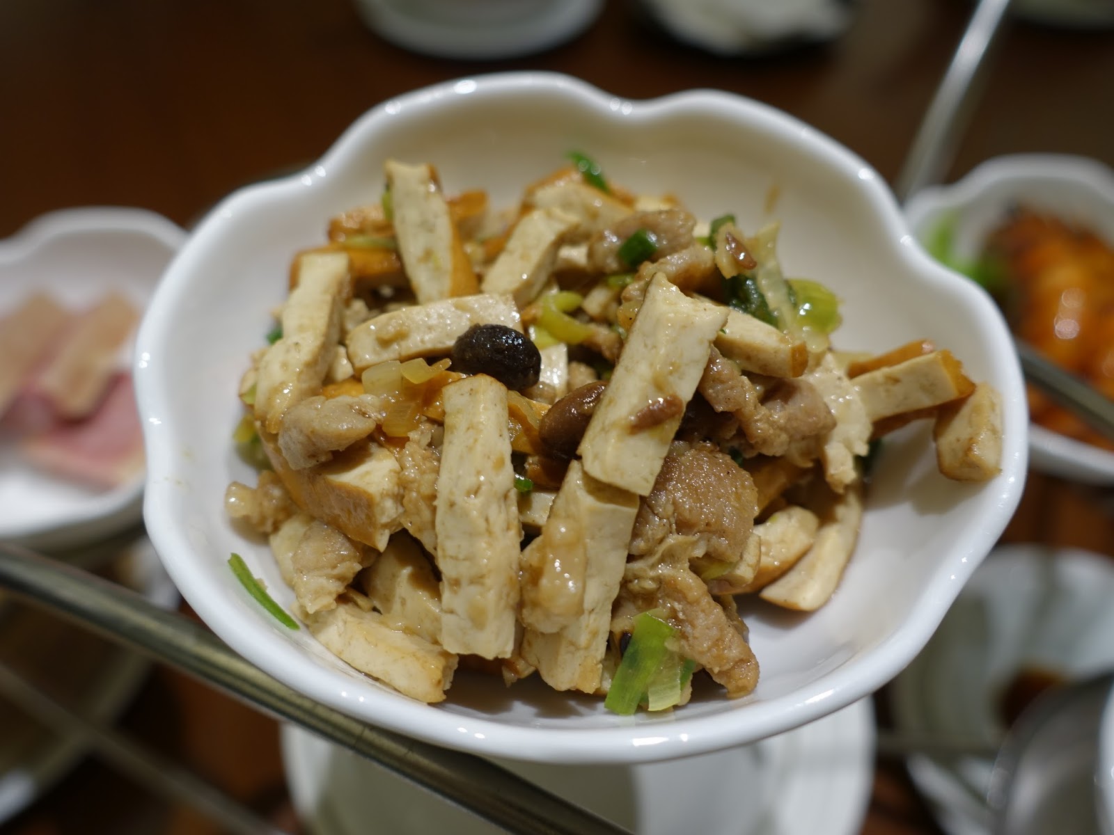 苦瓜吃起來很清爽,看似不起眼的豆干絲也做得很用心,嚐了一口後就停不下來,這兩道都是冷菜,在各式小點中迂迴的吃著,再回頭來吃這兩道冷菜,口感特別有趣。