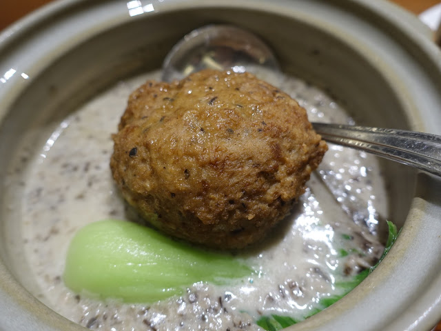 這道松露獅子頭用湯匙輕鬆地就能切開,肉丸質地綿密細緻又帶著彈性,與松露醬汁一起入口,味道中西式合璧,這麼獨特的滋味在別處可是吃不到的。