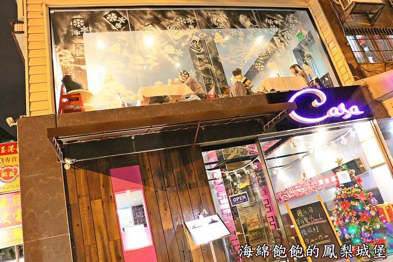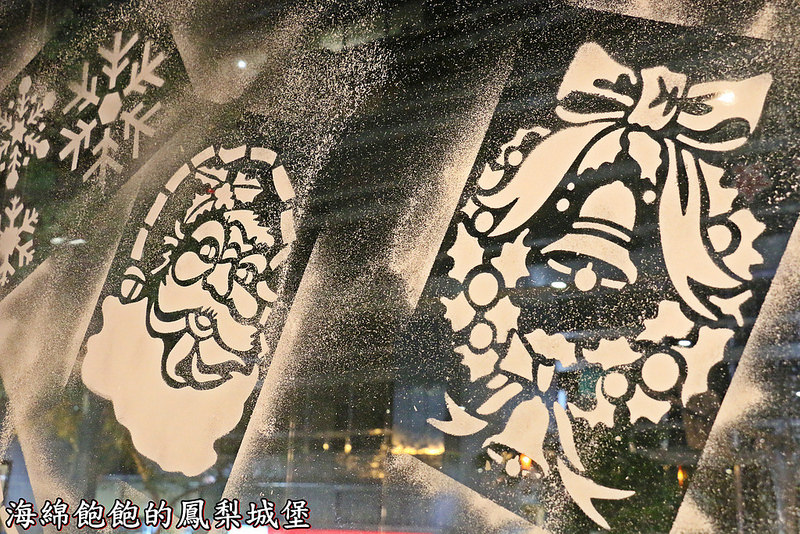落地窗上噴了聖誕節佈置,氣氛不錯