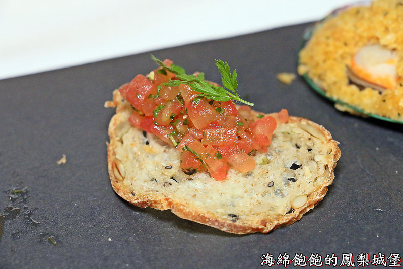 上面鋪著加了香料的蕃茄丁,清爽開胃