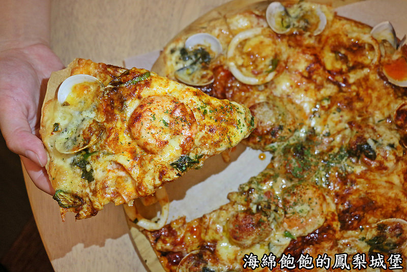 濃郁的醬料搭配起司,薄脆餅皮與滿滿的海鮮