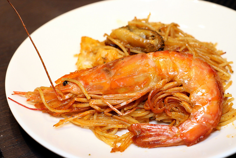 搭配紅蝦、淡菜、蛤蠣、魚塊與花枝