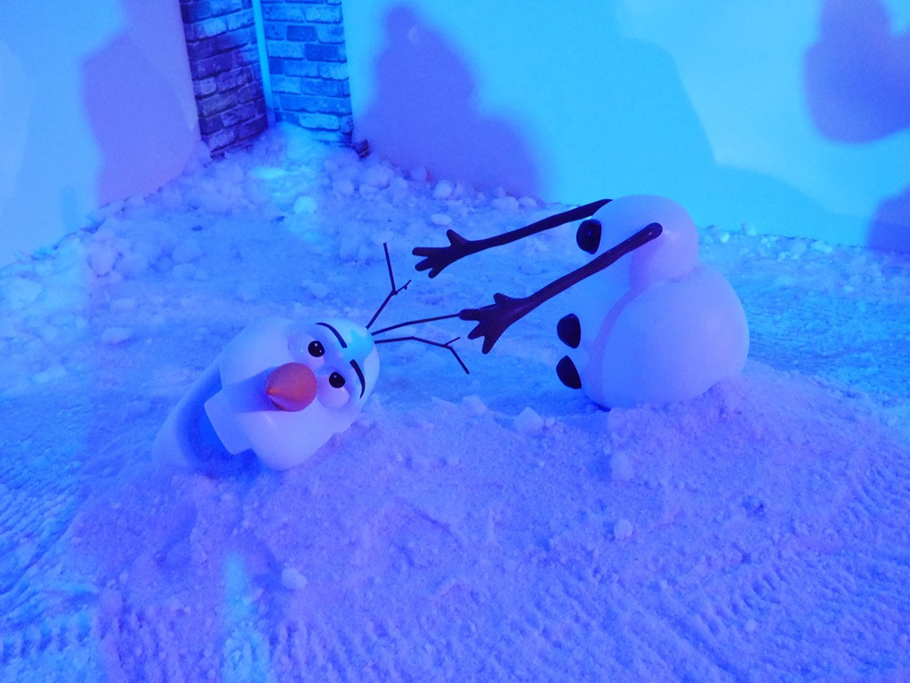 這一區透過了內投影銀幕,播放著擁有點物成冰魔法的艾莎