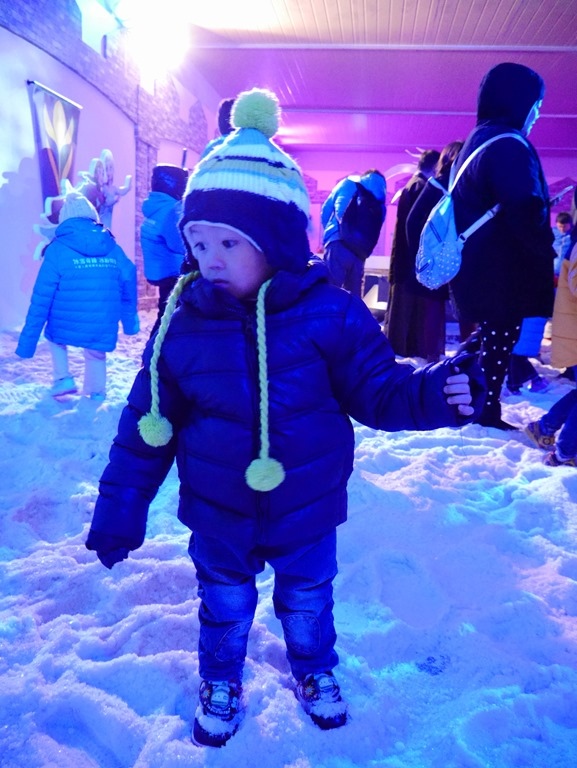 兩寶第一次摸到人造雪~超興奮,腳邊還有一個斷頭雪寶
