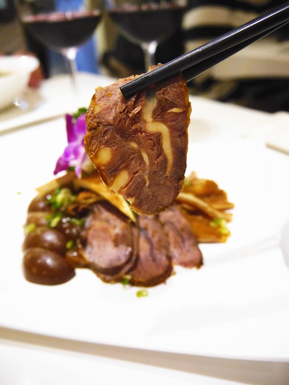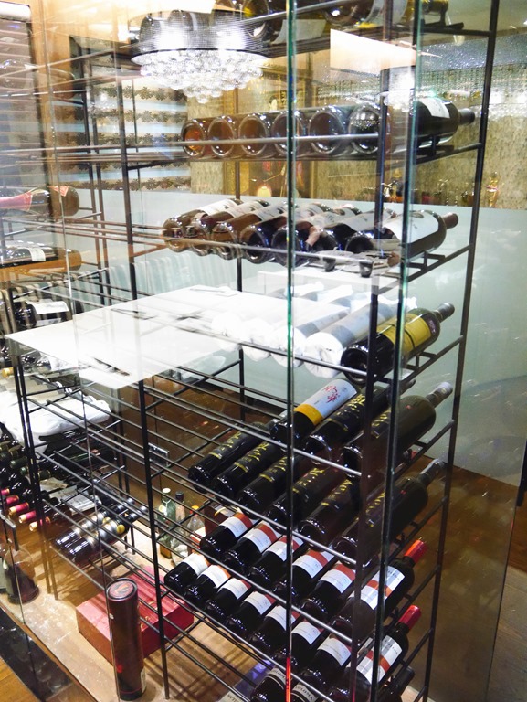在華麗水晶飾下,一碗牛肉麵、一杯紅酒~