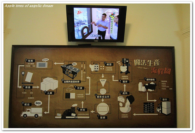 再來進入魔法廊道可以讓你直擊餅乾工廠的流程,透明玻璃後面就是餅乾產線及生產人員