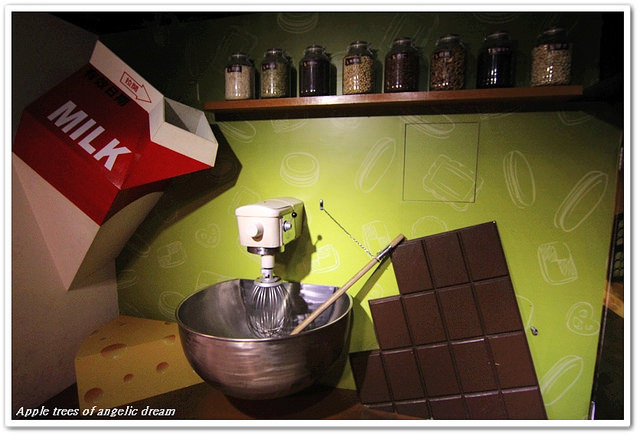 接下來是介紹餅乾的製作過程,把製程中的設備和材料都變大提供大家拍照非常有趣