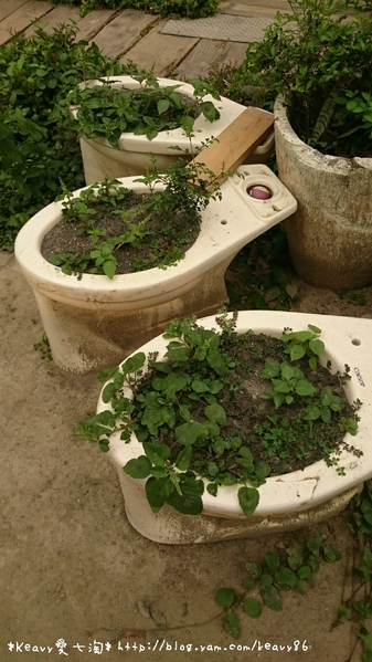 連廁所都充滿著創意,廁所旁的花圃也很有哏!