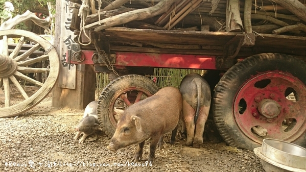 再走進農場裡頭,突然驚見⊙▽⊙,怎麼有不明物體從身旁經過,哈哈…,仔細一看,原來這裡一家都是豬啦!實在是太可愛了,而且還老中青三代同堂呢!