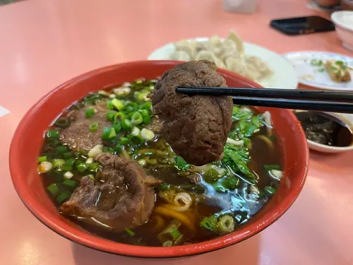 梁師傅牛肉麵餃子館|八里最有名氣的牛肉麵,牛肉軟嫩大塊,湯頭與麵條也很完美