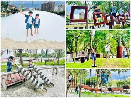 ★桃園親子景點推薦★桃園最新特色遊戲場『桃園第一河濱公園』,全台唯一免費玩的雲朵彈跳床、汲水設施、森林冒險區、滑索,陸海空一次滿足大小朋友!