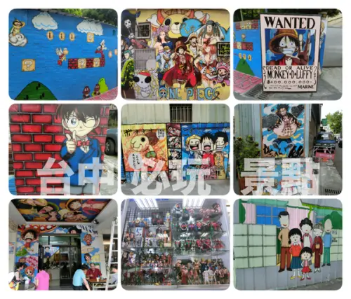 ( 台中 景點 )朝聖海賊王動漫彩繪巷 海賊王的壁畫 兩津勘吉 七龍珠 火影忍者 櫻桃小丸子.....等