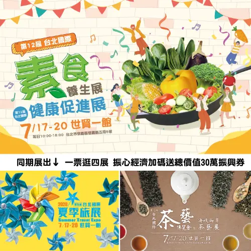 振興首檔:一票逛四展-台北素食健康、茶藝、夏季旅展,消費滿額再抽振興券