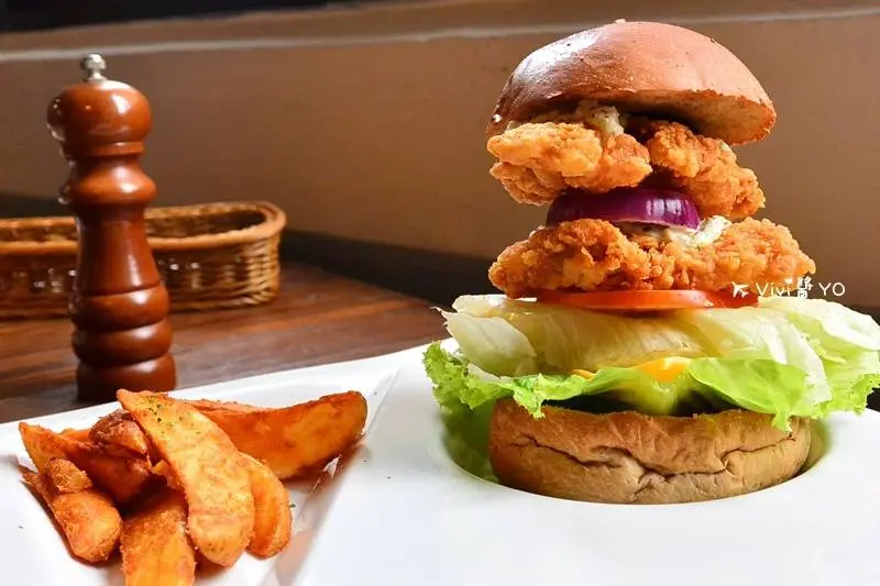 又又炸雞堡,看到我的炸雞堡份量有點嚇到,原來又又的意思就是一層又一層,中間還有洋蔥、番茄、生菜跟起司搭配著享用,麵包是選用全麥麵包,紮實有咬勁,很香很好吃,莎莎醬與炸雞蔬菜們的口味搭配也很不錯,雞肉外酥脆且內嫩、多汁。![]()
