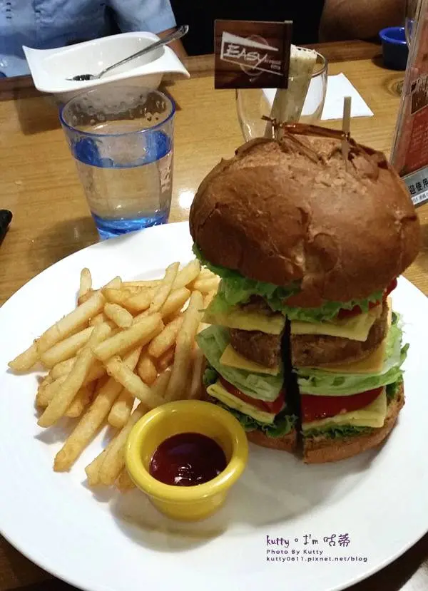 EZ大漢堡高達15公分以上,一個人根本吃不完!蔬菜很敢給喔又很新鮮。我只能分著吃無法一口吃,太可惜了!!!素肉排也超好吃的完全不知道是素食~超滿足的。![]()