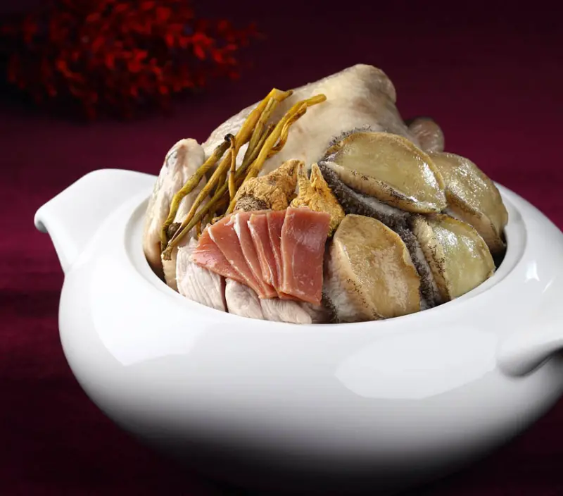 ▲「藝饗迎春」年菜外賣:瑪卡石斛鮑魚雞盅