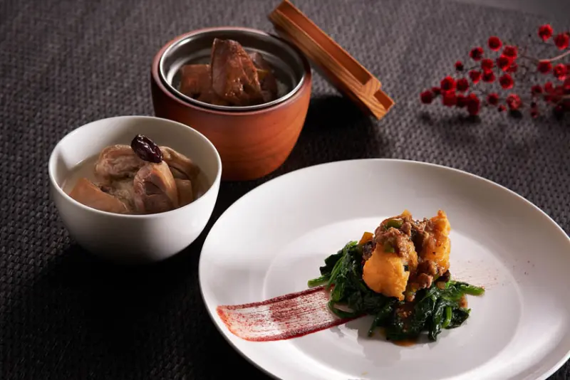 位於台北寒舍艾美酒店二樓的中餐廳「寒舍食譜」,以沉穩大器的設計美學,蘊含底氣與扎實料理工藝的粵式美饌,打造出信義都會區的食尚空間。為回饋賓客的熱烈支持,及日起,每週一至週五,點用寒舍食譜午間饗宴NT$1,080+10%(每位),即可享有三人同行一人免費之優惠,因應秋冬季,寒舍食譜陳泰榮主廚特別打造暖冬豐盛料理,精選套餐包含「酥炸和風軟殼蟹沙拉」、暖意滿點的滋補湯品「老薑清燉黑草羊腩湯」、「豆豉彩椒香爆鱈魚」其魚肉外層香酥,內層鮮嫩多汁,此外亦有香氣四溢的「麻油花肝拌飯」,依序再呈上「季節限定水果」與「珍穀紫米紅豆湯」,多道佳餚,邀請您輕鬆品味午間的粵式輕饗宴。洽詢專線:02 6622 8018