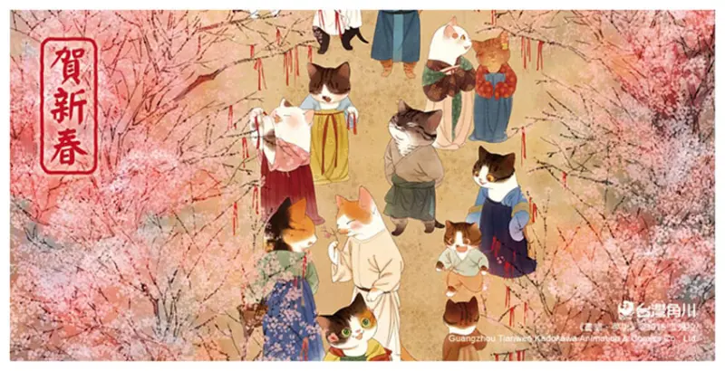 為慶祝新書上市以及春節的到來,《畫貓.夢唐》除了首刷隨書附贈2款精美貓咪古風書籤外,於博客來、金石堂網路書店買書另加贈「賀新春」款精美小卡,而於誠品以及部分實體書店,也可向店家免費索取「賀新春」款,一同與可愛貓兒幸福過年(本活動請洽詢書店)!此外自1/29至2/29,凡於台灣角川消費,不限金額同樣立即送「賀新春」款精美小卡,數量有限送完為止!想與貓兒一同體會大唐生活的朋友千萬別錯過!