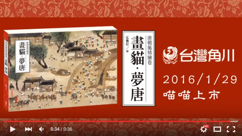 關於貓,生活中有太多趣事;關於唐朝,歷史上有太多奇聞……《畫貓.夢唐》正是結合上述兩點的第一本貓版唐朝長安風情繪卷,以貓擬人,細細講述發生在唐朝的各種傳奇故事與風俗。作者瓜幾拉最初在新浪微博上發表即造成相當大的好評!而由台灣角川推出的繁體中文版則將於1/29於全台各大通路上市。