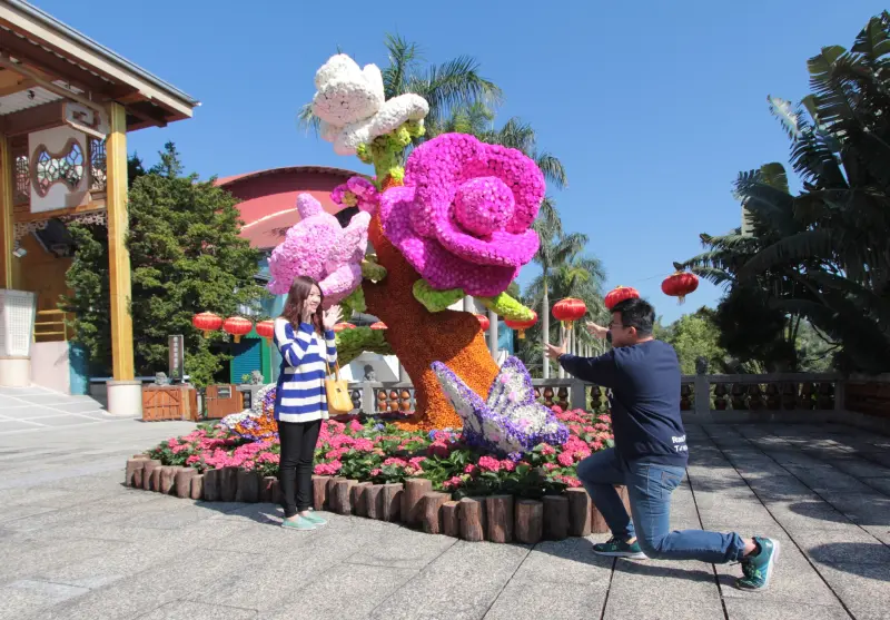 歡慶30周年紀念,劍湖山世界春節「賞花、看秀、玩樂園」全台最好康!農曆春節加碼:2/6-2/14小年夜到年初七,12歲以下憑證免費入園,即日起到2/29屬猴只要399元!為迎接過年的到來,引進超過50萬朵鮮花全手工裝置推出全台唯一花雕藝術節!其中最受注目的「彩菊花雕樹」以數種鮮豔菊花,打造高近6公尺超大型玫瑰造型花雕!