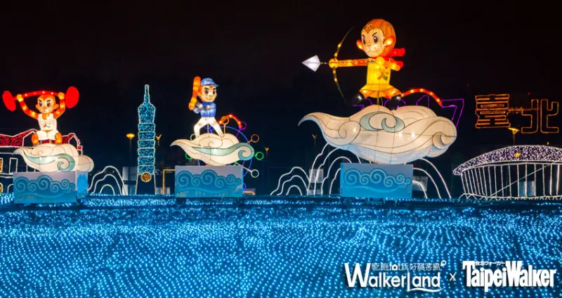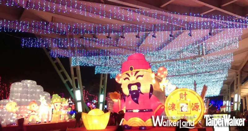 除了主燈外,花博園區還有最有年節氣氛的「祈福燈區」,可愛的財神爺,祝福大家財源滾進,還有以家喻戶曉的西遊記作為主角的主題花燈。橫跨中山北路、連結花博圓山、美術公園的人行天橋,今年也化身為浪漫的「愛情海」,以9萬6000顆藍綠色LED燈裝飾外觀,波光粼粼的夢幻景象,也是不可錯過的一大亮點。