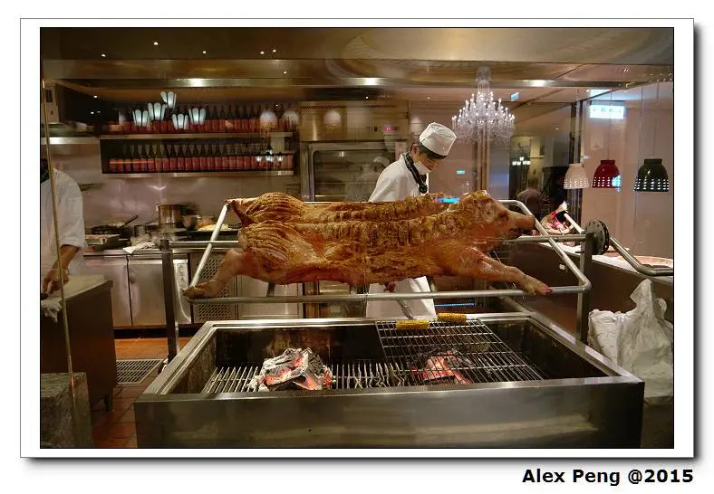 窩客「海爸」推薦:要把這麼多美食吃一遍,得要很大的肚量啊,所幸用餐時間從開始營業到休息至少都有3個小時,可以發揮吃的最大潛能,日式海鮮區一尾鮪魚就放在那,還有DIY撈蝦、燙魚生。![]()