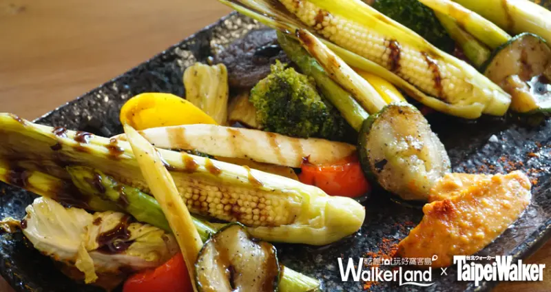▲「西班牙炭烤時蔬」經炭烤的小農直送蔬菜,搭配西班牙進口初榨橄欖油,香氣迷人。(圖/WalkerLand)