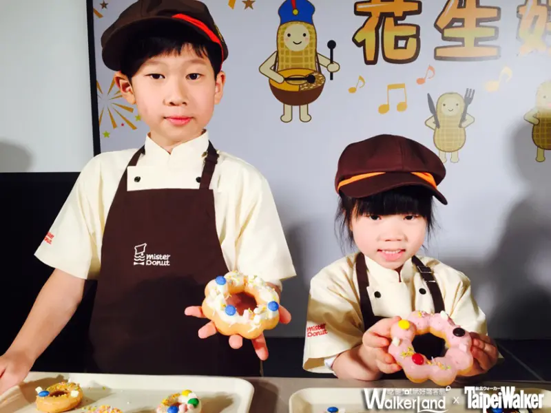 Mister Donut推出全新「小小烘焙師」課程,小朋友穿著Mister Donut制服,展示烘焙師的專業,從可愛波堤獅與好友們的不同個性,認識 Mister Donut 每一種甜甜圈的特性。親子的甜甜圈DIY體驗,每位小朋友可以盡情展現創意,並讓親子互動零距離。有獎徵答互動遊戲,小小競賽增添刺激,培養小朋友勇於舉手發表,訓練表達能力。![]()