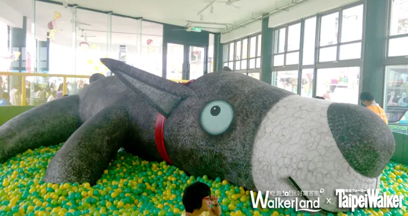 ▲「宜蘭幸福轉運站」大黑狗球池造型吸睛,可近距離接觸繪本腳色。(圖/宜蘭縣政府社會處)