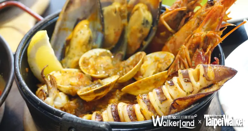 窩客「Popo Huang」評論:西班牙海鮮烤飯,米飯口感保留一點米芯,可以細細品嘗香料及番紅花香氣,海鮮則有蛤蠣、淡菜、蝦子及花枝,吃之前記得把檸檬擠上唷,這道烤飯是我覺得最好吃的一樣。<<看全文>>