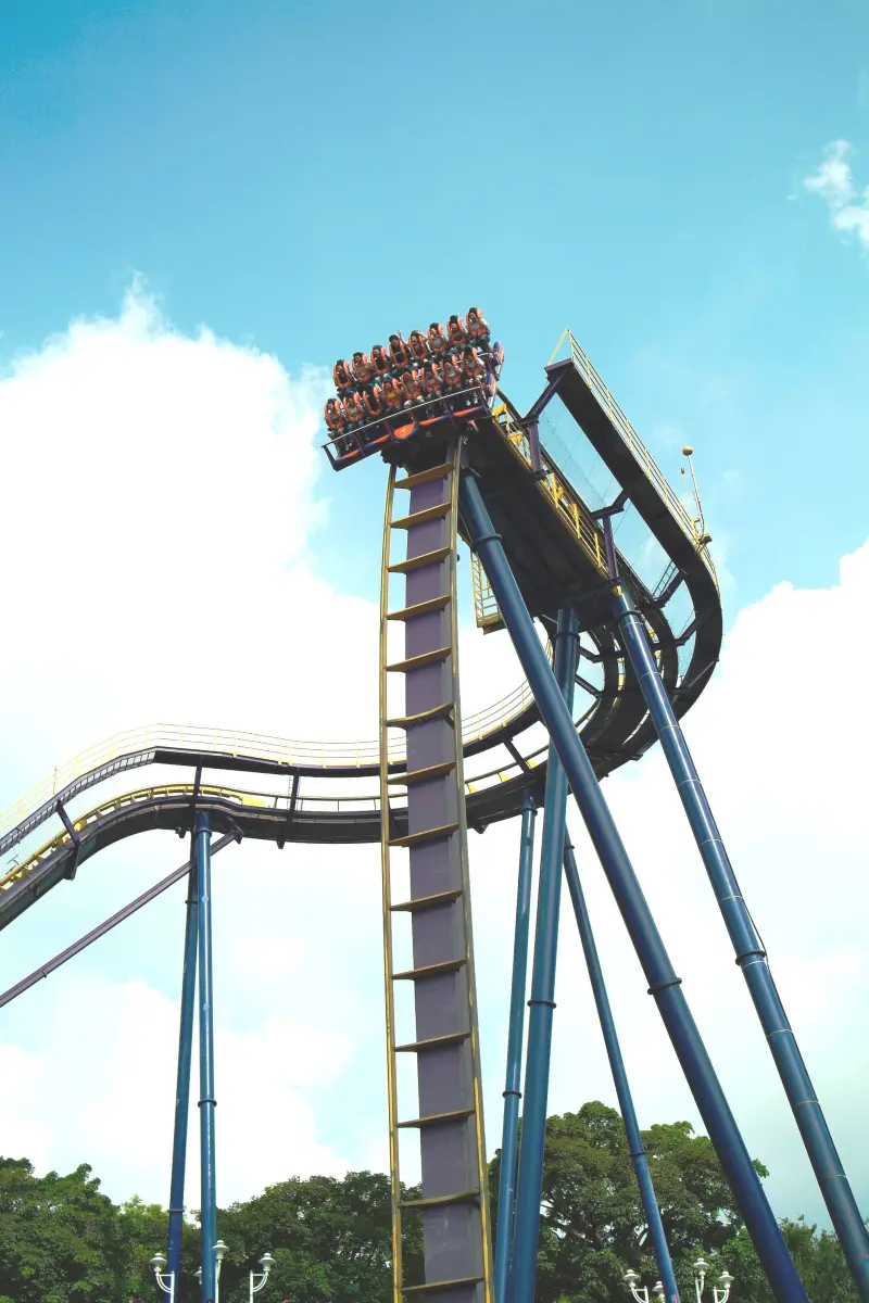 ▲紓壓利器人氣王「G5飛天潛艇」90度瞬間墜入無底黑洞,搭乘瞬間只專注急墜快感,把煩惱拋諸腦後!(圖/劍湖山世界)