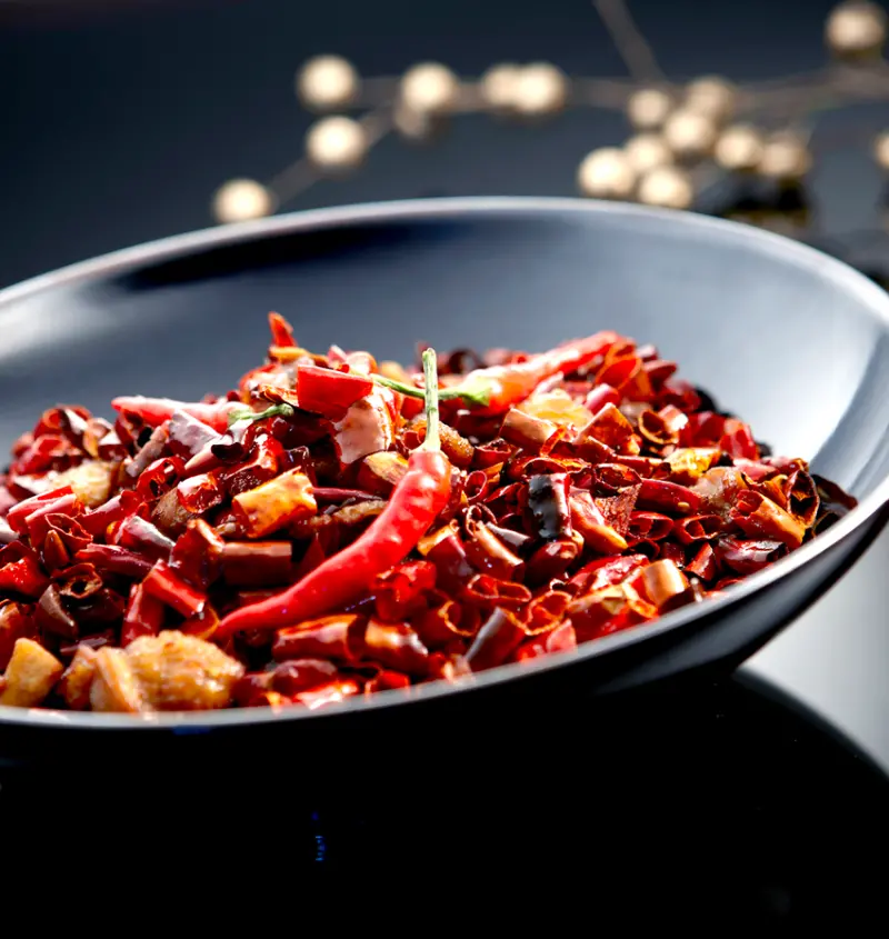 彭勇師傅提到,傳統的川菜以「蔥、薑、蒜」三香以及當地所產的花椒為主,然而在明末清初之後,由於各地的人士進入川蜀,在人文匯聚下,辣椒的使用也成為了川菜的特色。
