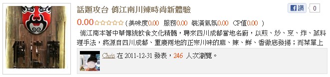 2012年人氣店家 "按讚數"NO.1大賞!