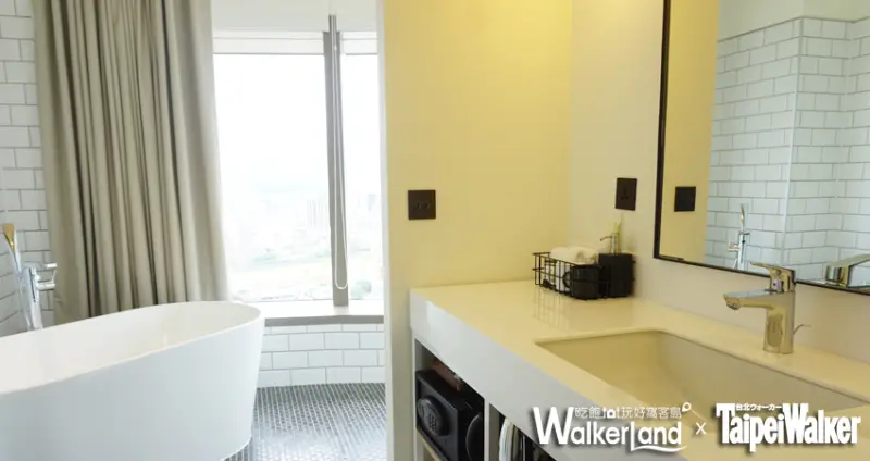 每間客房內備有獨立淋浴間及寬敞的浴室檯面,酷景房、樂活房及Studio浴室則擁有自然採光浴缸,可於泡澡時欣賞台北101或基隆河的迷人景色 ; 純天然沐浴用品”薑心比心”清新舒爽的味道,讓身心靈皆放鬆,適放一整天的壓力。多樣化的貼心服務及設備,讓入住旅客在忙碌旅途中一樣可享受到最舒適、悠閒的休憩空間。